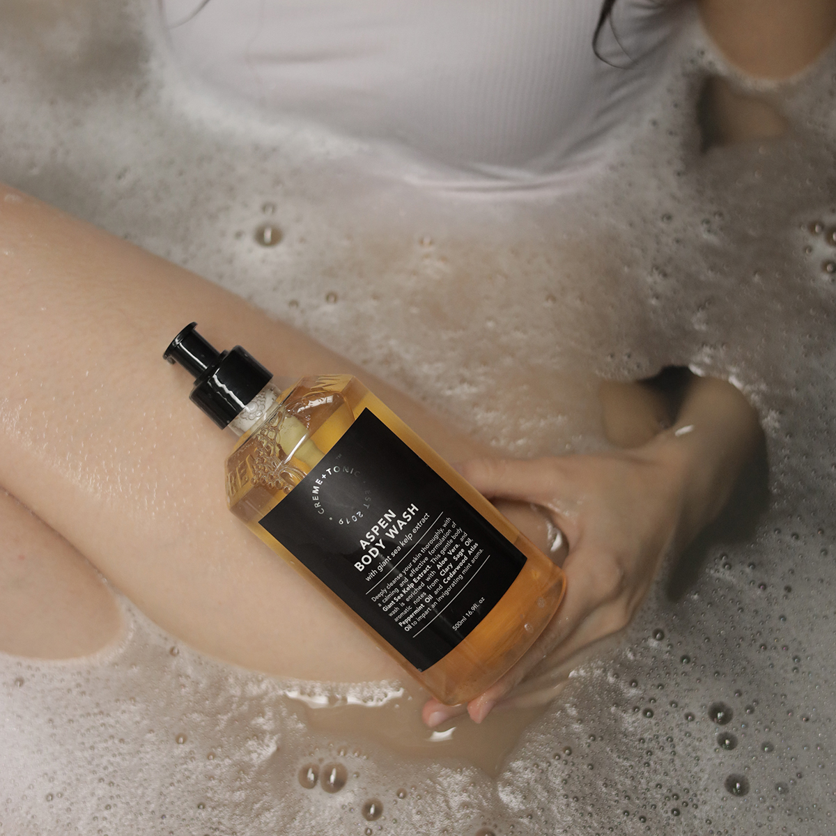 ASPEN Body Wash is a deeply cleansing body wash with a calming and effective formulation of Giant Sea Kelp Extract. This low-foaming body wash is enriched with Aloe Vera, and aromatic notes from Clary Sage Oil, Peppermint Oil and Cedarwood Atlas Oil to impart an invigorating herbal mint aroma.